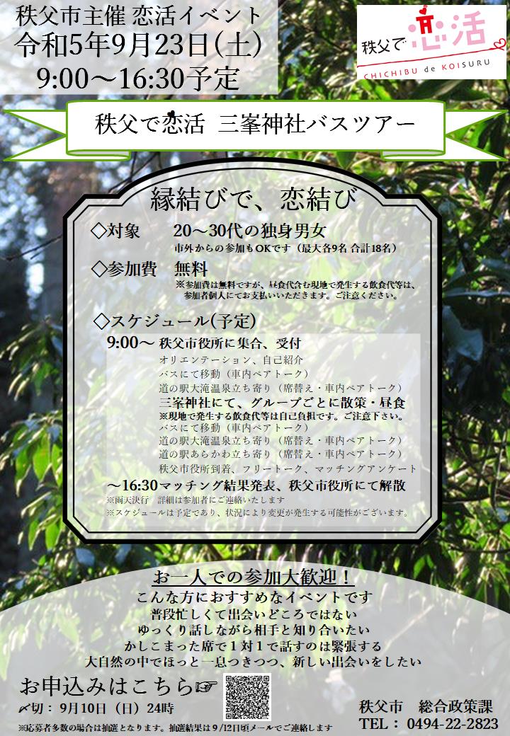 【恋活イベント】三峯神社バスツアー恋活(令和5年9月23日)