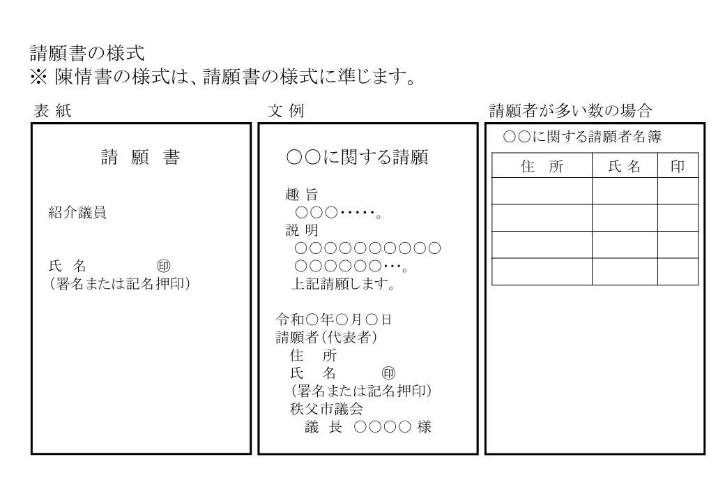 陳情書も様式は請願書と同じですが、紹介議員は必要ありません。