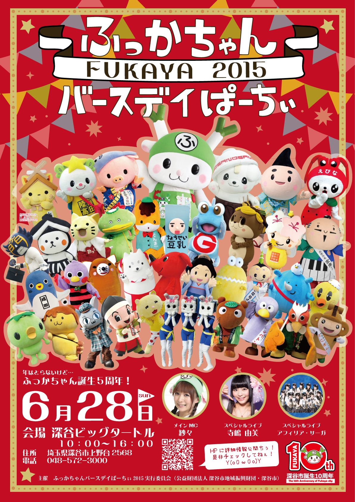 今度の日曜日、28日の10時から16時まで深谷市にある「深谷ビッグタートル」で、あの人気者「ふっかちゃん」の「バースデイぱーちぃ」があるんだけど、それにお呼ばれしたんだー。